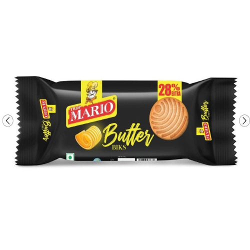 Τα μπισκότα Mario Butter Biks είναι τραγανά, βουτυρώδη μπισκότα φτιαγμένα από αλεύρι σίτου, βούτυρο, ζάχαρη και μια πρέζα αλάτι. Κάθε συσκευασία των 90 γρ. περιέχει 10 ατομικά τυλιγμένα μπισκότα, παρέχοντας ένα βολικό σνακ με πλούσια υφή που λιώνει στο στόμα. Ιδανικά για γεύματα, λιχουδιές μετά το σχολείο ή συνοδευτικά επιδόρπιου, αυτά τα μπισκότα προσφέρουν σταθερή γεύση και μια ικανοποιητική τραγανότητα.